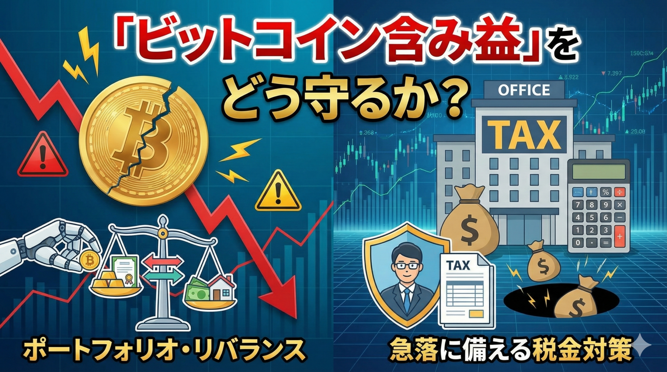 「ビットコイン含み益」をどう守るか?急落に備えるポートフォリオ・リバランスと税金対策